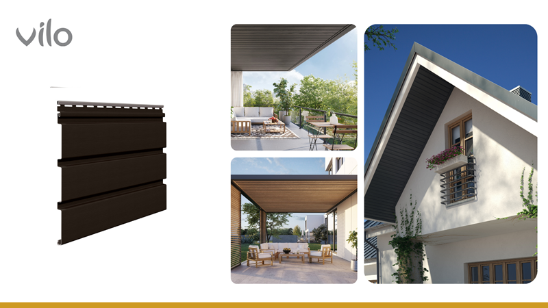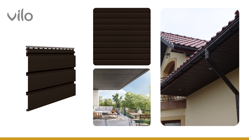 2. Czy brąz Vilo pasuje do rynien? Odpowiedź: Tak. Kolor Brąz w systemie VOX Vilo to klasyczny ciemny brąz (często zbliżony do RAL 8017). Jest to najbardziej standardowy kolor w budownictwie jednorodzinnym, dzięki czemu podbitka idealnie współgra z brązowymi rynnami i dachówkami.